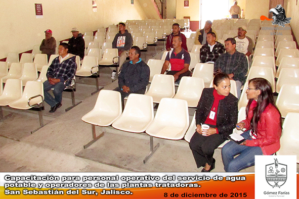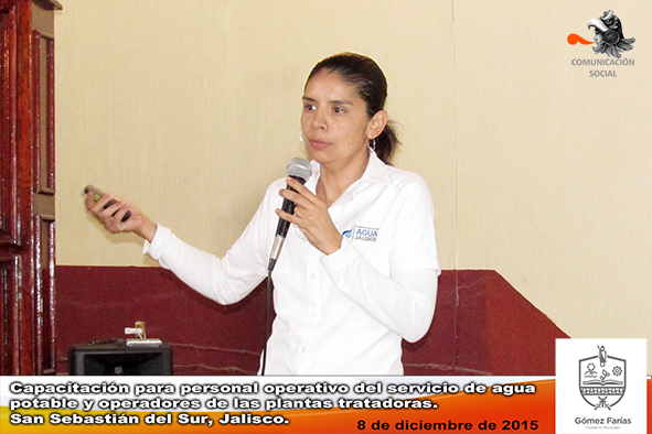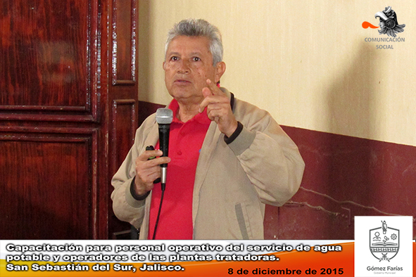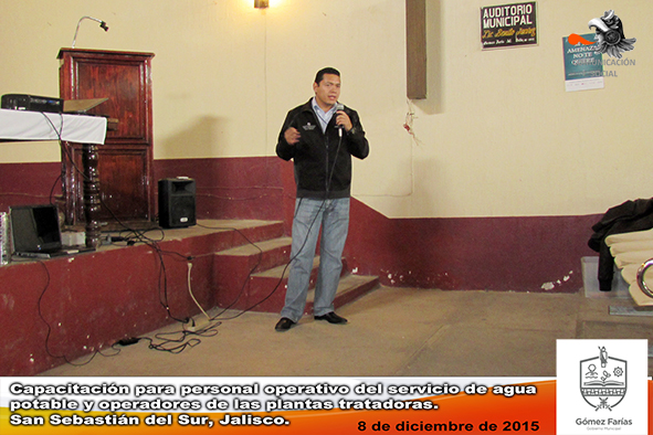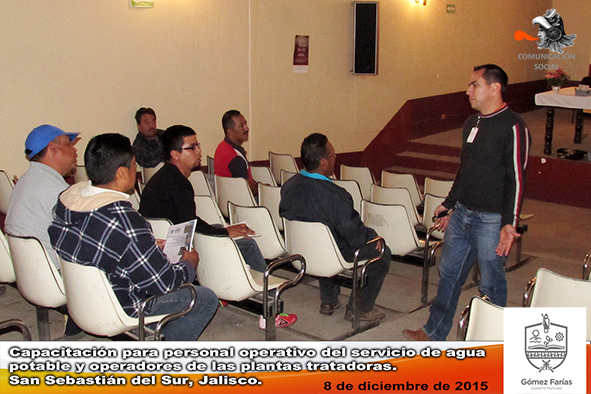 SAN SEBASTIÁN DEL SUR, JALISCO, DICIEMBRE DE 2015 (Comunicación Social).- A través de los Departamentos de Ecología y Agua Potable, personal de la Comisión Estatal del Agua (CEA), ofrecieron una capacitación al personal operativo del servicio de agua potable y de las plantas tratadoras del municipio de Gómez Farías, Jalisco, en el auditorio municipal Benito Juárez, este 8 de diciembre.